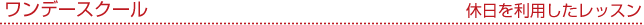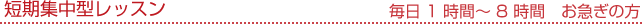 「平日は時間が取れない」「仕事で疲れて集中できない」など、休日を利用したワンデーレッスンです。 ※個別に受け付けております。ご相談下さい。 |